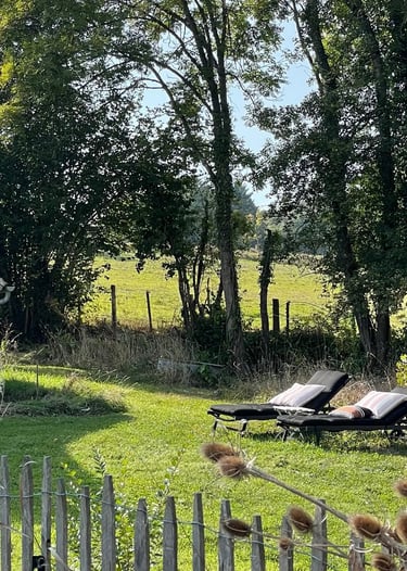 Un grand jardin sauvage de 5000m2 au milieu duquel trône la grange. Véritable refuge de biodiversité, il permet de profiter d'une tranquillité optimale.