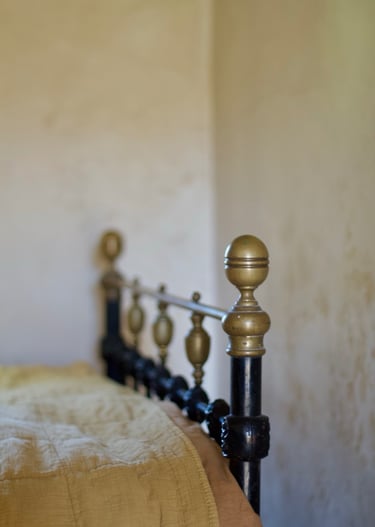 En contrebas, quelques marches mènent à la chambre solo et une chambre double avec sa salle de bains privative.